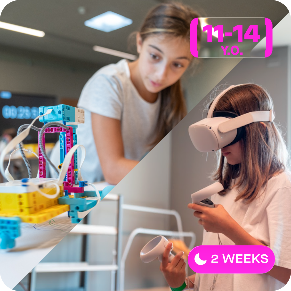 I partecipanti esplorano la Realtà Virtuale progettando videogiochi 3D, e sperimentano l'Intelligenza Artificiale utilizzando strumenti come Canva AI per creare grafiche e layout professionali. Sviluppano inoltre competenze fondamentali di programmazione e robotica, potenziando il pensiero logico e computazionale, la creatività e la risoluzione dei problemi.