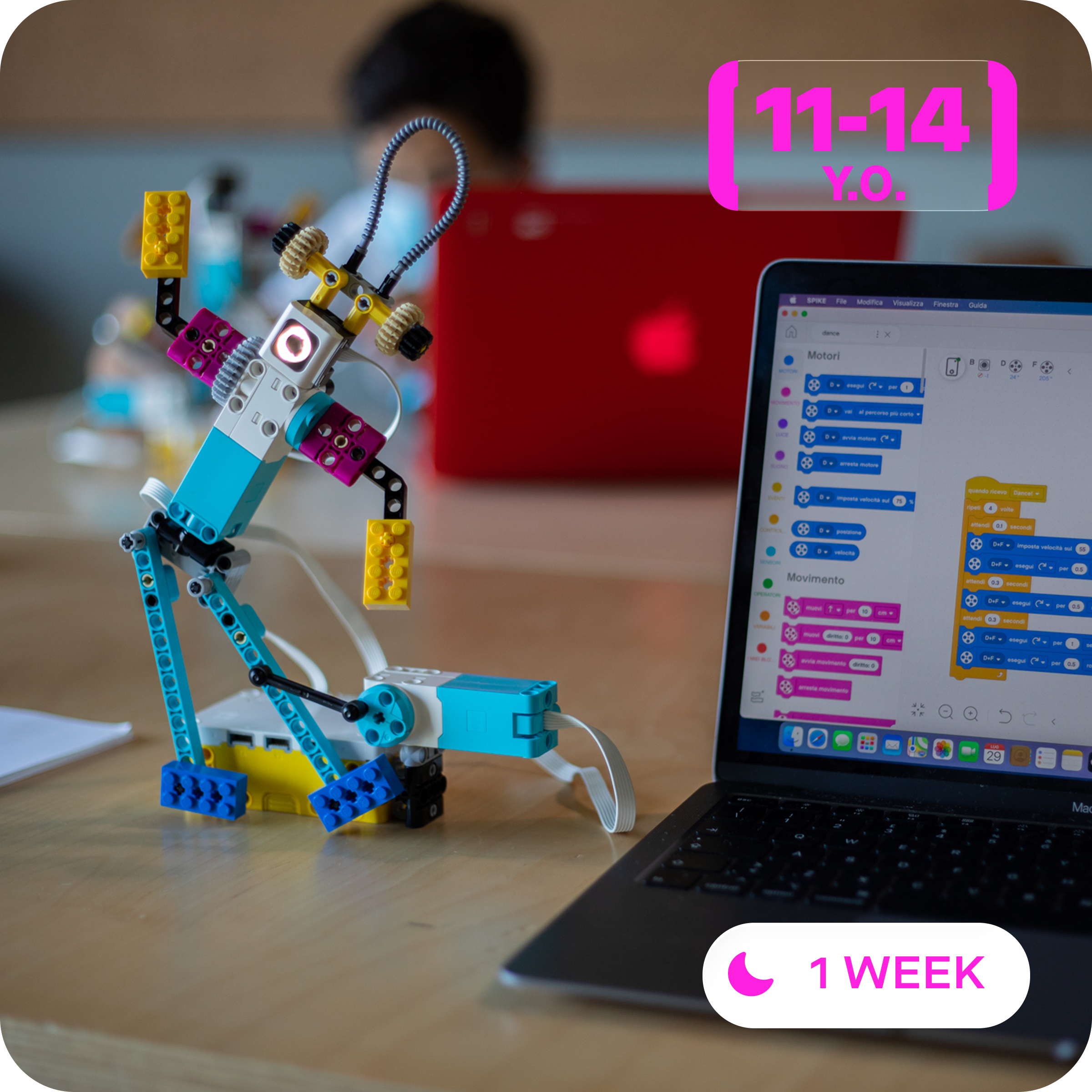Afternoon: STEAM Workshops in Italian where, through practical workshops and the use of LEGO Spike Prime edutech kits, participants acquire skills in sensor programming, management of movements and sounds, in addition to honing their communicative and problem-solving abilities.