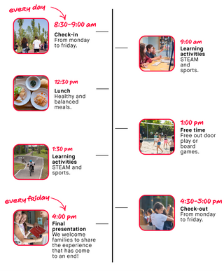From Monday to Friday, 8:30 am to 5:00 pm, participants enjoy a unique experience within the H-FARM Campus. Each day features a balanced mix of digital workshops, sports activities, and leisure moments, designed to support cognitive, physical, and social development.