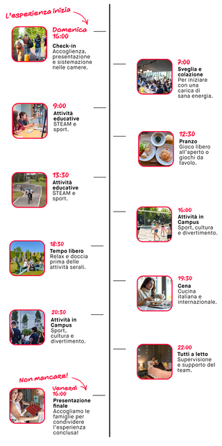 L’esperienza settimanale residenziale offre l’opportunità di vivere la Summer Academy a stretto contatto con coetanei provenienti da contesti e Paesi diversi, stringere nuove amicizie e sviluppare competenze interpersonali. La vita in H-FARM Campus favorisce autonomia, collaborazione e scoperta di sé, rendendo ogni giorno un’occasione di crescita personale.